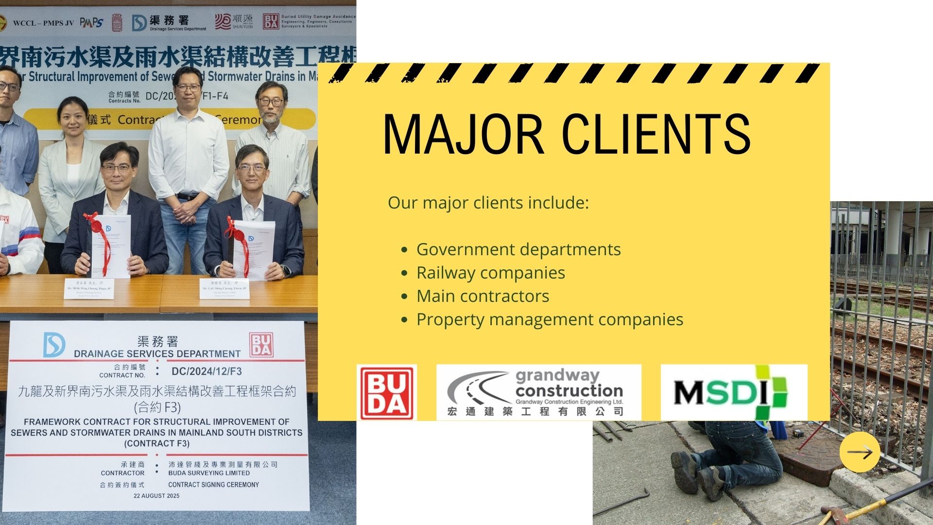 Our major clients include government departments, railway companies, main contractors, and property management companies.